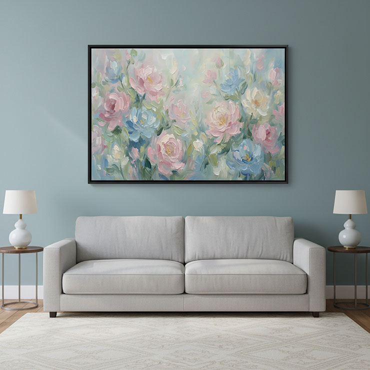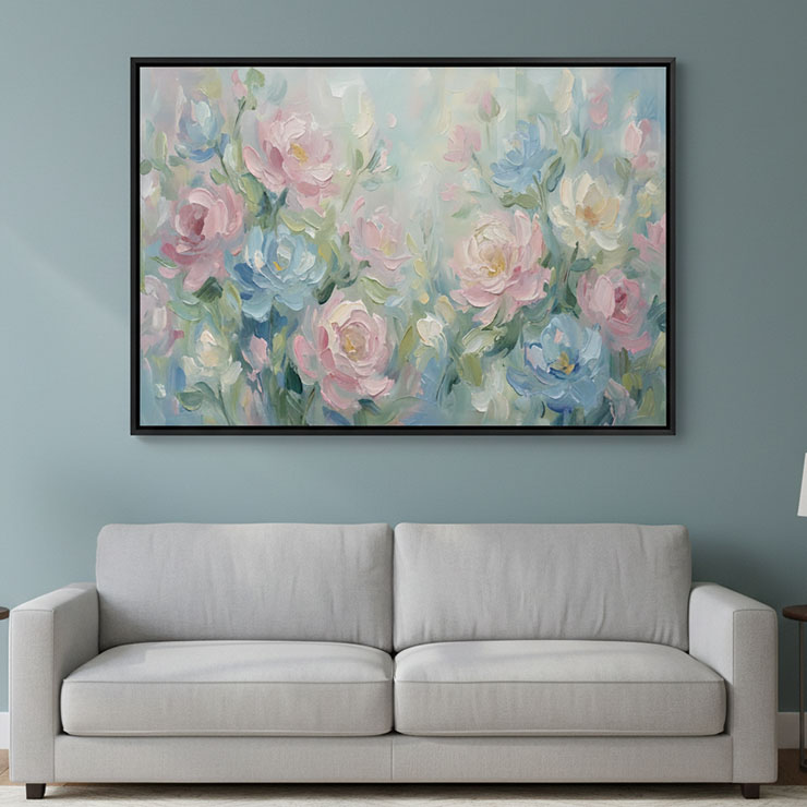 Let your imagination drift with "Whispers of a Dream Bloom," an abstract piece that captures the gentle essence of a mystical garden. With rich, painterly brushstrokes and a serene impasto texture, this digital artwork embodies a dreamscape where flowers dance in soft hues of pastel pink, sky blue, and mint green. Perfect for adding a touch of modern elegance and tranquility.