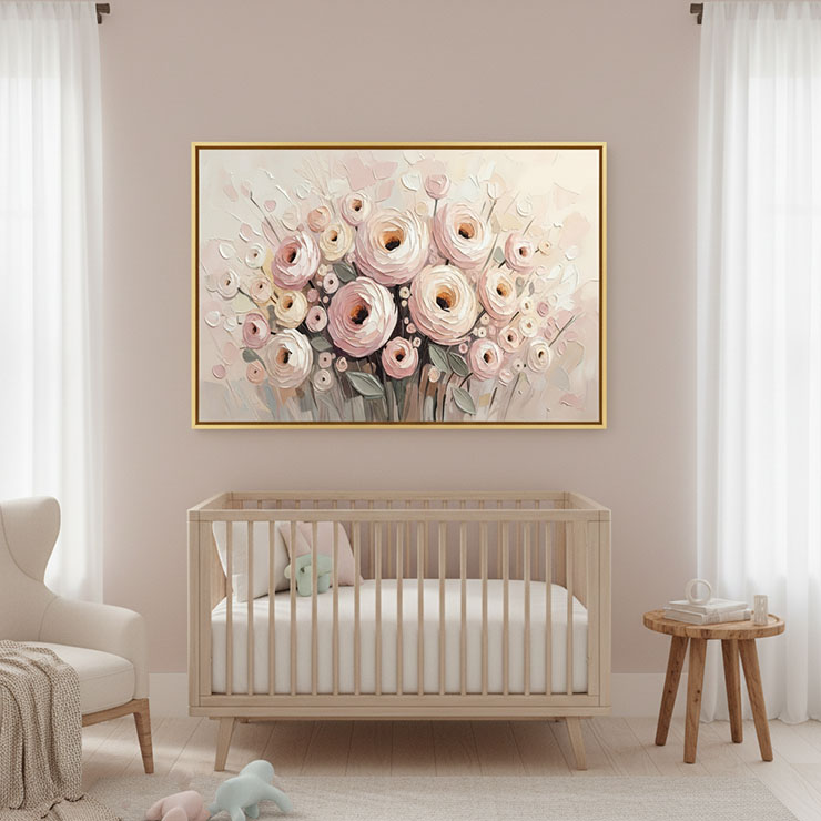 A soft romantic wall art inspired by dreamy gardens, perfect for creating a calm and warm atmosphere in serene living spaces.